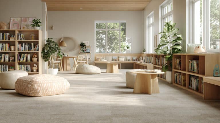 I skoler, biblioteker og andre institutioner er gulvtæpper et godt valg, fordi de giver komfort, reducerer støjniveauet og skaber et varmt miljø. De bidrager til en rolig stemning og er nemme at tilpasse rummets funktion med både farver og mønstre.
